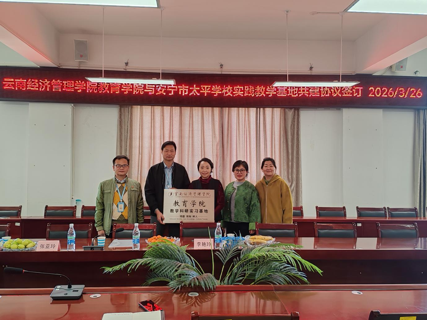 2025年9月15日下午,云南经济管理学院教育学院体育教育专业师生团队一行前往安宁市职业高级中学开展深度合作洽谈。本次交流一方面是派送8名体育教育专业实习生到岗实习,另一方面是派送了2名专业骨干教师赴进校开展挂职锻炼,旨在进一步达成校际间资源共享,平台共建的目标。
